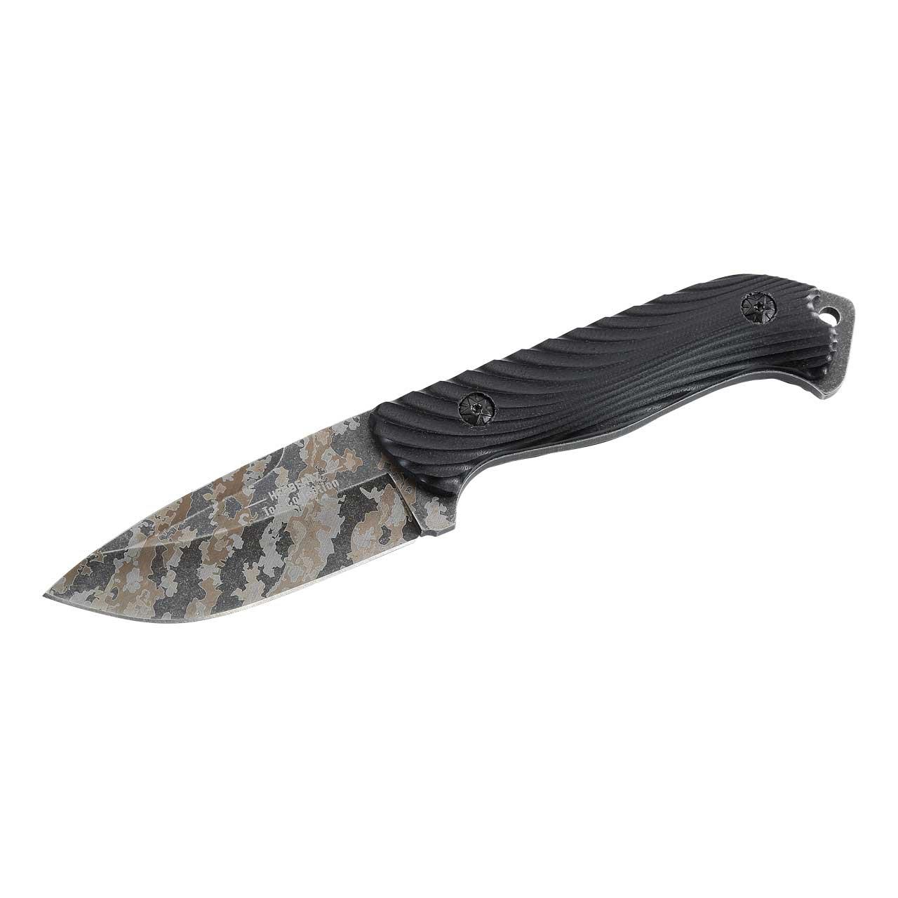 Ein massives Herbertz Gürtelmesser aus der TOP-Collection Serie überzeugt mit einer durchgehenden Klinge aus dem bekannten Hochleistungsstahl AISI 420. Die Klinge in Stone-Washed Optik gefertigt und hat einen zusätzlichen Tarndruck. Der ergonomisch geformte Griff ist aus strukturiertem G10 Material hergestellt. Zum Lieferumfang gehört eine schwarze Nylonscheide mit Gürtelschlaufe und eine gepolsterte TOP-Collection Kunststoff-Box.